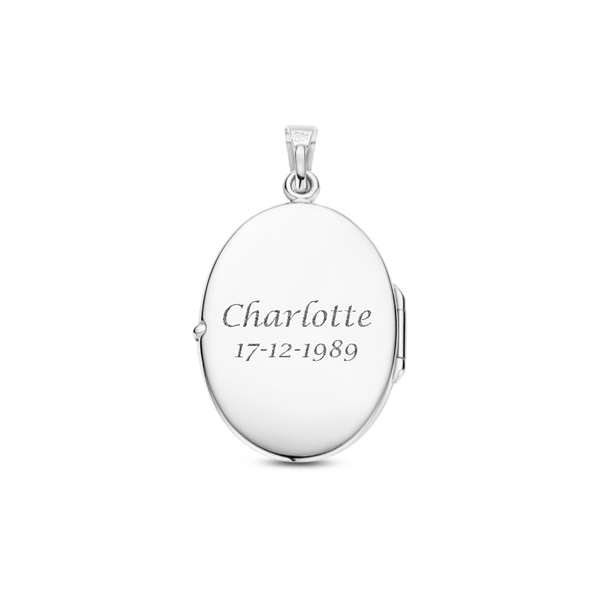 Een mooi glanzend ovaal medaillon. Graveer het medaillon en maak er een uniek aandenken van. Voeg een foto toe aan de binnenkant en draag jouw dierbare altijd bij je. Op de hanger kunnen namen en data worden gegraveerd. De breedte is 22 mm en de hoogte 16 mm.