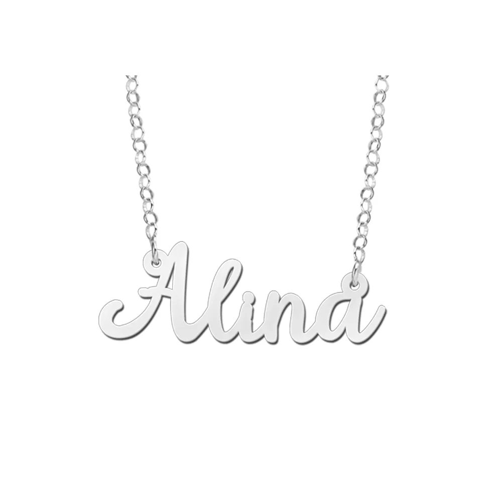 Jouw naam verwerkt in een naamketting Op zoek naar een zilveren naam ketting dat een sierlijk lettertype heeft? Bekijk dan eens deze naamketting. Deze 925 Sterling zilveren naam ketting heeft een naamplaatje van 0, 7 mm dik. De afmeting van de naam in het voorbeeld is 26 mm x 10 mm. Dit is slechts indicatief en hangt van de naam af.