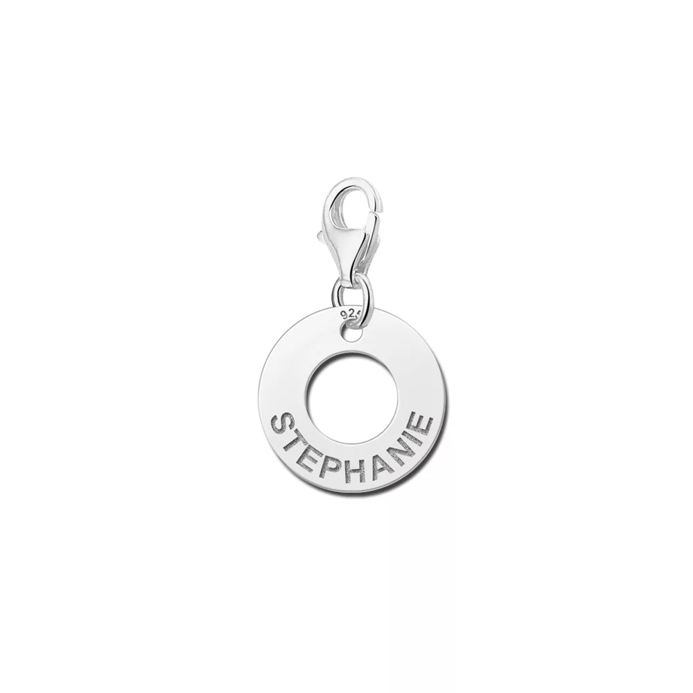 Deze ronde gouden bedel met naam met cirkel wordt voorzien met de naam van jouw keuze.