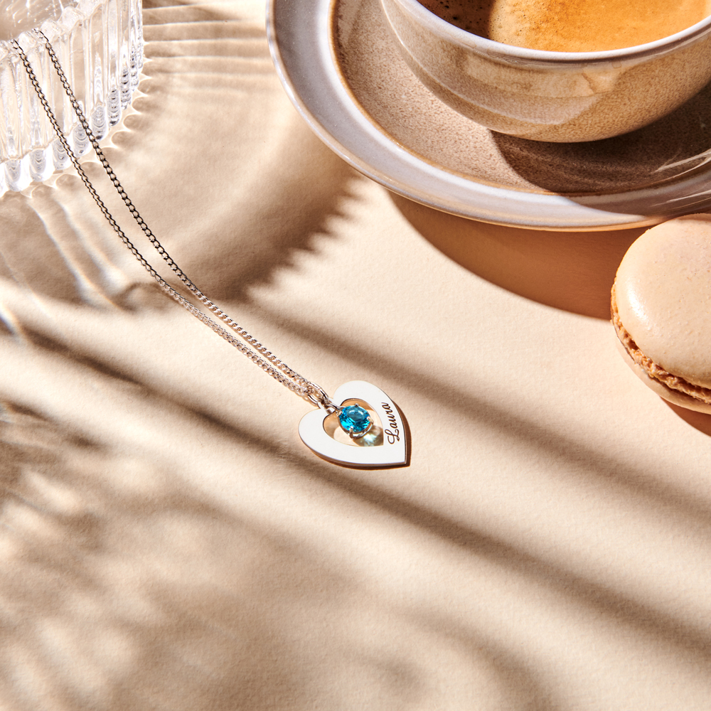 Schitterende zilveren hanger in de vorm van een liefdevol hart voorzien van jouw, haar of zijn naam. De naam wordt gegraveerd in sierlijke letters.