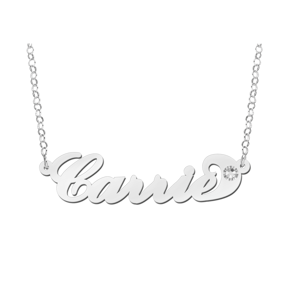 Het Carrie model met heel glamorous een schitterende zirkonia! Dit is DE ketting van stijlicoon Carrie. Deze naamketting draagt zij in de serie en in de films SATC. In de laatste aflevering raakt zij de ketting bijna kwijt…. Personaliseer deze Carrie Style naamketting met de naam van de je keuze. Van dit model is het formaat van een gemiddelde naam van 6 letters is ca. 11 mm hoog x 40 mm breed. Deze maat is slechts ter indicatie!