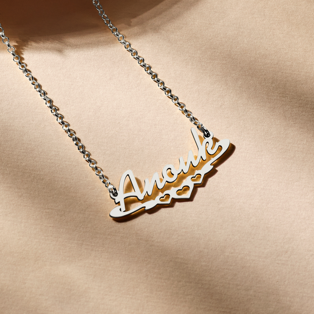 Mooie naamketting van 925 Sterling zilver met als voorbeeld naam Anouk. Gepersonaliseerd met jouw eigen naam of een woord. De grootte van de naam is afhankelijk van de desbetreffende naam. Ter indicatie: de letters zijn stuk voor stuk ongeveer 19 mm hoog en 8 mm breed. De dikte is 0, 7 mm. Je kunt kettinglengte 42 cm of 50 cm kiezen. Tevens kun je uit diverse soorten kettingen kiezen. Is het een cadeautje? Komt goed uit! Je ontvangt de zilveren naamketting namelijk in een mooi sieradendoosje.