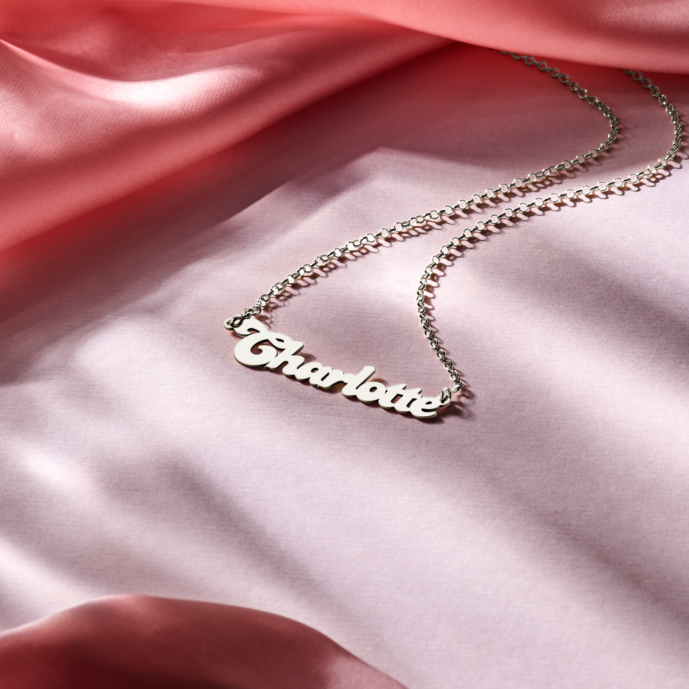 Deze prachtige 925 Sterling zilveren naamketting heeft als voorbeeldnaam Charlotte. Door zijn elegante, maar eenvoudige design is hij perfect voor iedere outfit en gelegenheid. De maat van de voorbeeldnaam is ca. 13 mm hoog x 60 mm breed; dit is ter indicatie en verschilt per naam. De dikte van het naamplaatje is 0, 7 mm. Je kunt uit verschillende soorten kettingen kiezen; allemaal hebben ze kettinglengte 42 cm of 50 cm. Je ontvangt de naamketting van zilver in een schattig sieradendoosje.