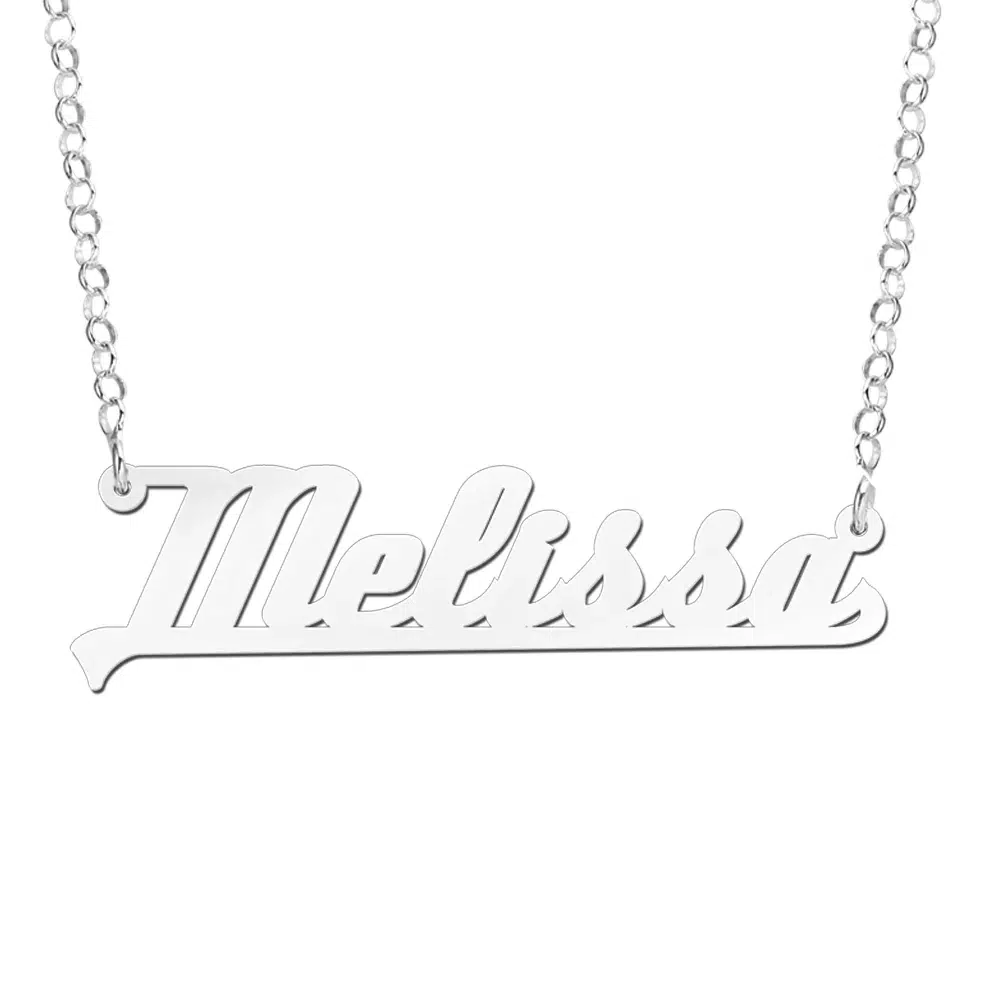 Dit is de zilveren stoere naamketting model Melissa. Deze zilveren naamketting is gemaakt van het eerste gehalte zilver. Deze zilveren naamketting model Melissa is precies wat bij jou past! Het is een stoere naamketting, heel eenvoudig maar toch heel sprekend. Heel leuk om te krijgen maar, ook heel leuk om weg te geven!
