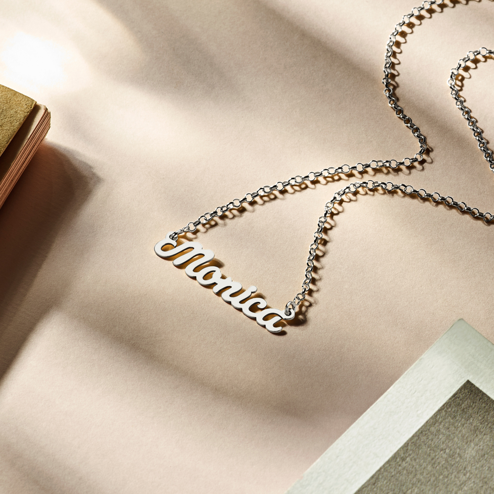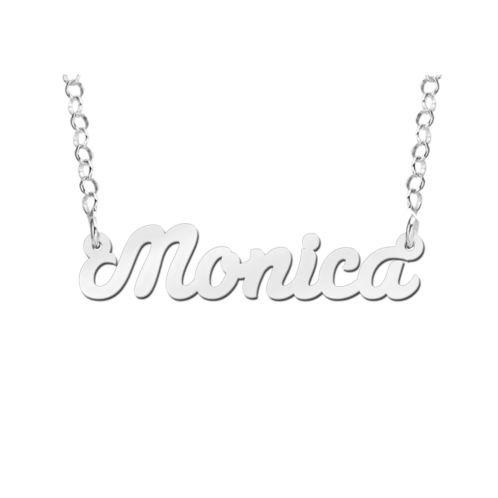 Prachtige zilveren naamketting met voorbeeldnaam Monica. Door het mooie simpele lettertype met lichte krul heeft deze naamketting zowel een strakke als sierlijke look. Zo is hij modern en klassiek ineen, en staat hij prachtig bij elke outfit. Perfect om iedere dag van te genieten dus! Ter indicatie: de grootte van een naam met vijf letters is circa 33 mm x 10 mm. De dikte telt 0. 7 mm. Al onze zilveren sieraden worden gemaakt van het hoogwaardige 925 Sterling zilver, zodat ze lang meegaan. Zo is deze naamketting niet alleen een prachtig persoonlijk en stijlvol sieraad, maar ook nog eens erg sterk. Alles ineen dus! Zo weet je zeker dat je lang van deze naamketting kunt genieten en dat je een luxe sieraad cadeau geeft. Wie ga jij verrassen? Let op! Omdat de naamketting speciaal voor jou gemaakt wordt, bedraagt de levertijd circa 5 dagen. De precieze levertijd is afhankelijk van de post en de benodigde productietijd.