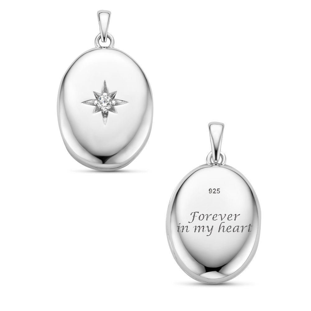 Een mooi glanzend ovaal medaillon met een steentje. Graveer het medaillon en maak er een uniek aandenken van. Voeg een foto toe aan de binnenkant en draag jouw dierbare altijd bij je. Op de hanger kunnen namen en data worden gegraveerd. De breedte is 16 mm en de hoogte 20 mm. Ernaast kun je ook een bijpassende ketting voor de hanger kiezen. We hebben kettinglengtes van 38 – 42cm en 45 – 50cm. Hier kan je kiezen uit verschillende soorten kettingen. Wil je de ketting cadeau geven? Dat komt mooi uit! Je ontvangt deze namelijk in een mooi sieradendoosje.