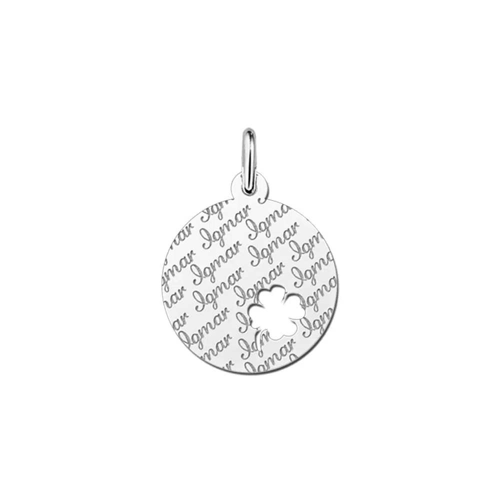 Keer op keer word je naam herhaald in dit plaatje van zilver met een elegant klavertje vier erin verwerkt. Dat is natuurlijk wel heel veel geluk! Het kan ook zo zijn dat jij dit plaatje van zilver cadeau wilt geven aan iemand die wel wat geluk kan gebruiken.