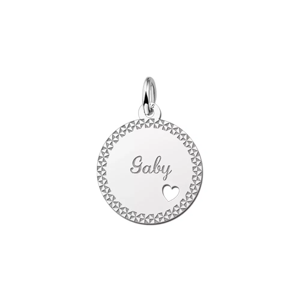 Dit zilveren plaatje met je naam is 17 x 17 mm groot en heeft als afwerking een elegante sierlijke rand. In het zilveren plaatje met je naam is ook nog een hartje verwerkt, dat staat uiteraard voor jouw onvoorwaardelijke liefde, voor jouw beste vriend(in)! Dit zilveren plaatje met je naam met deze prachtige sierrand wordt voor jou gegraveerd met een naam naar jouw keuze! Hoe romantische is dat, om de naam van je geliefde om je hals te dragen? Vergeet vooral niet een bijpassende ketting mee te bestellen.