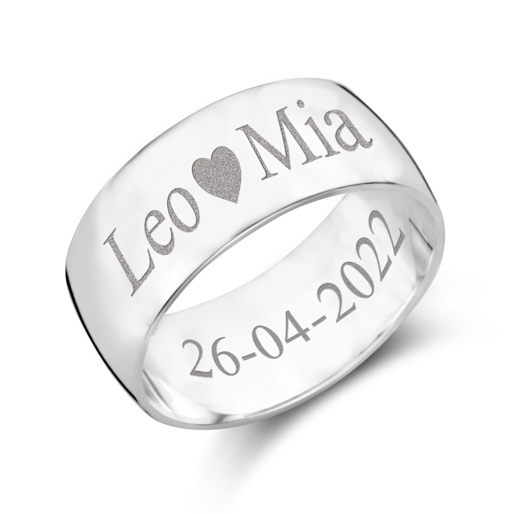 Zilveren ring graveren 8mm (bol). De subtiele bolling in de ring geeft het een vol karakter.