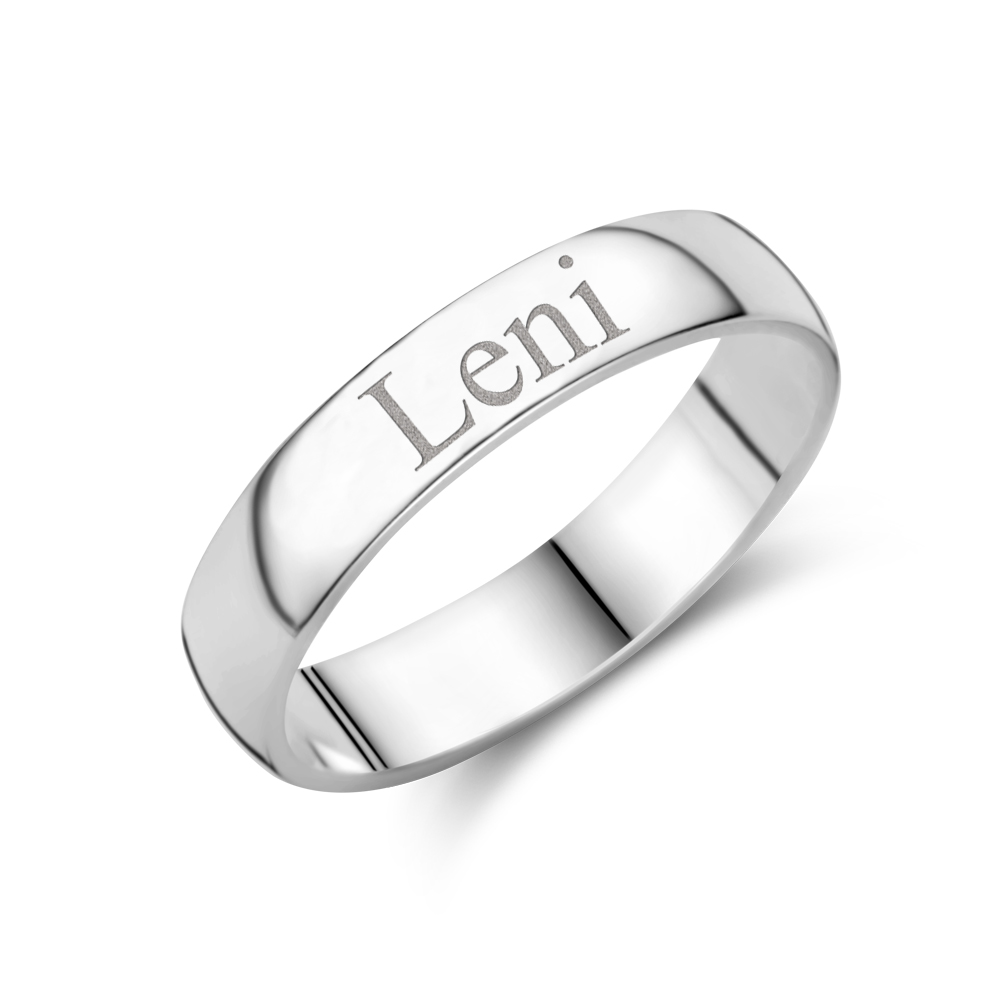 Deze elegante ring van 925 Sterling zilver met gegraveerde naam is een bijzonder cadeau. De ring is 4 mm smal en heeft een prachtige, bolle vorm.