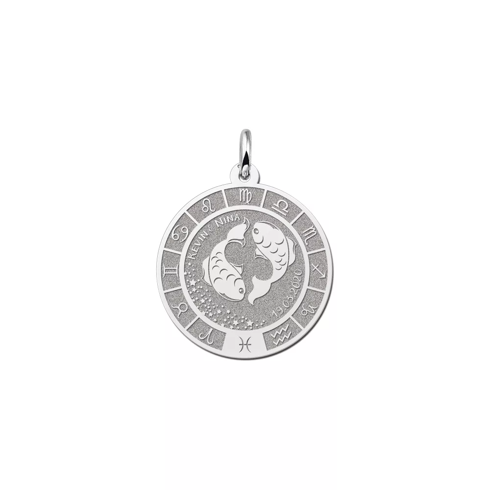 De Vissen-vrouw is een gevoelige dromer en zal zeer blij zijn met deze Vissen-hanger. Ook de gevoelige Vissen-man zal erg enthousiast zijn bij het zien van de Vissen-tekens in de sieraad. In dit voorbeeld kunnen maximaal 16 teken worden gegraveerd. De afmetingen zijn 21.7 x 21.7 mm met een dikte van 0,7 mm.