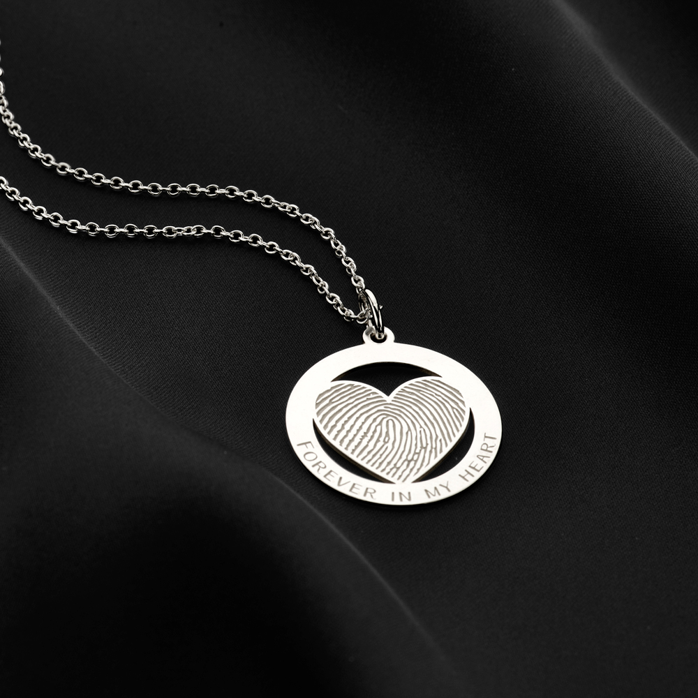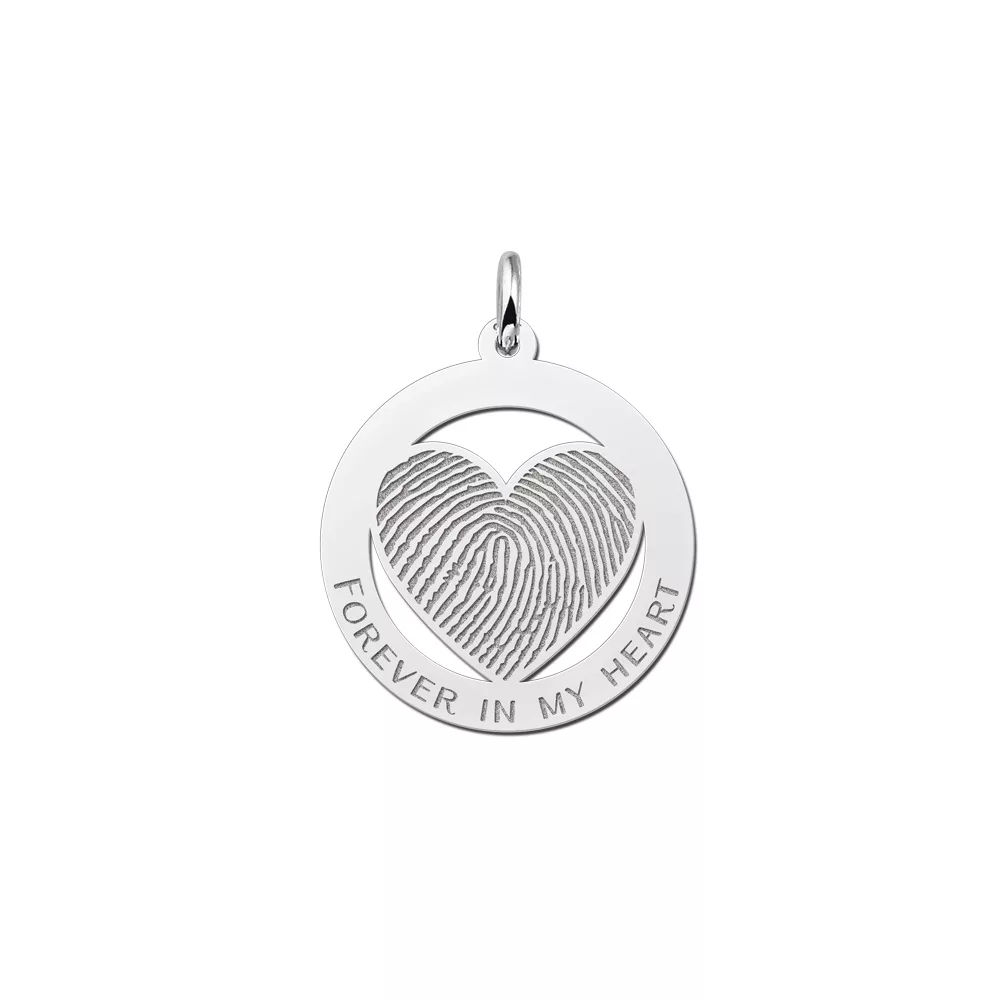 Zilveren vingerafdruk harthanger omcirkeld