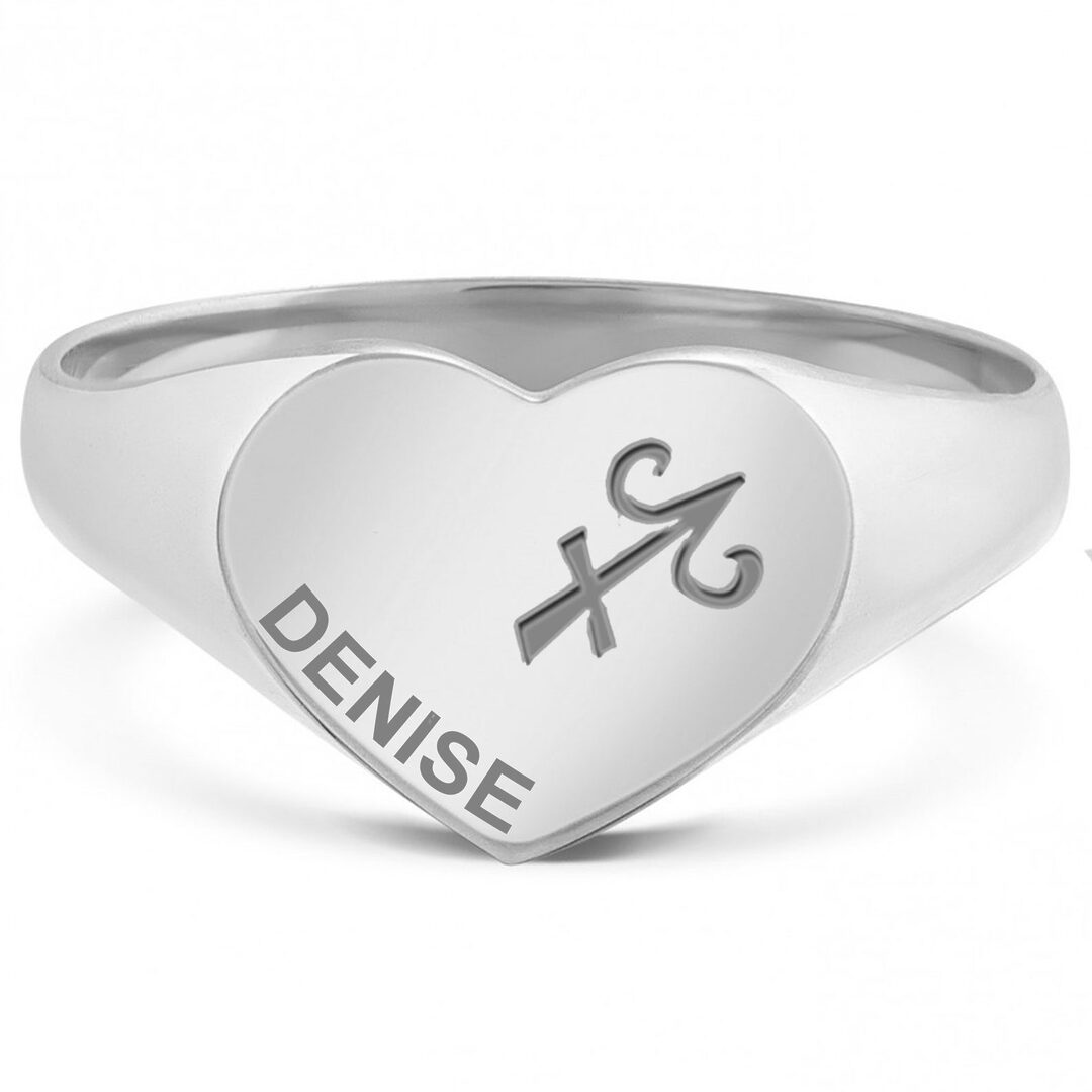 Zilveren zegelring hartvorm met horoscoop en gravure – Boogschutter