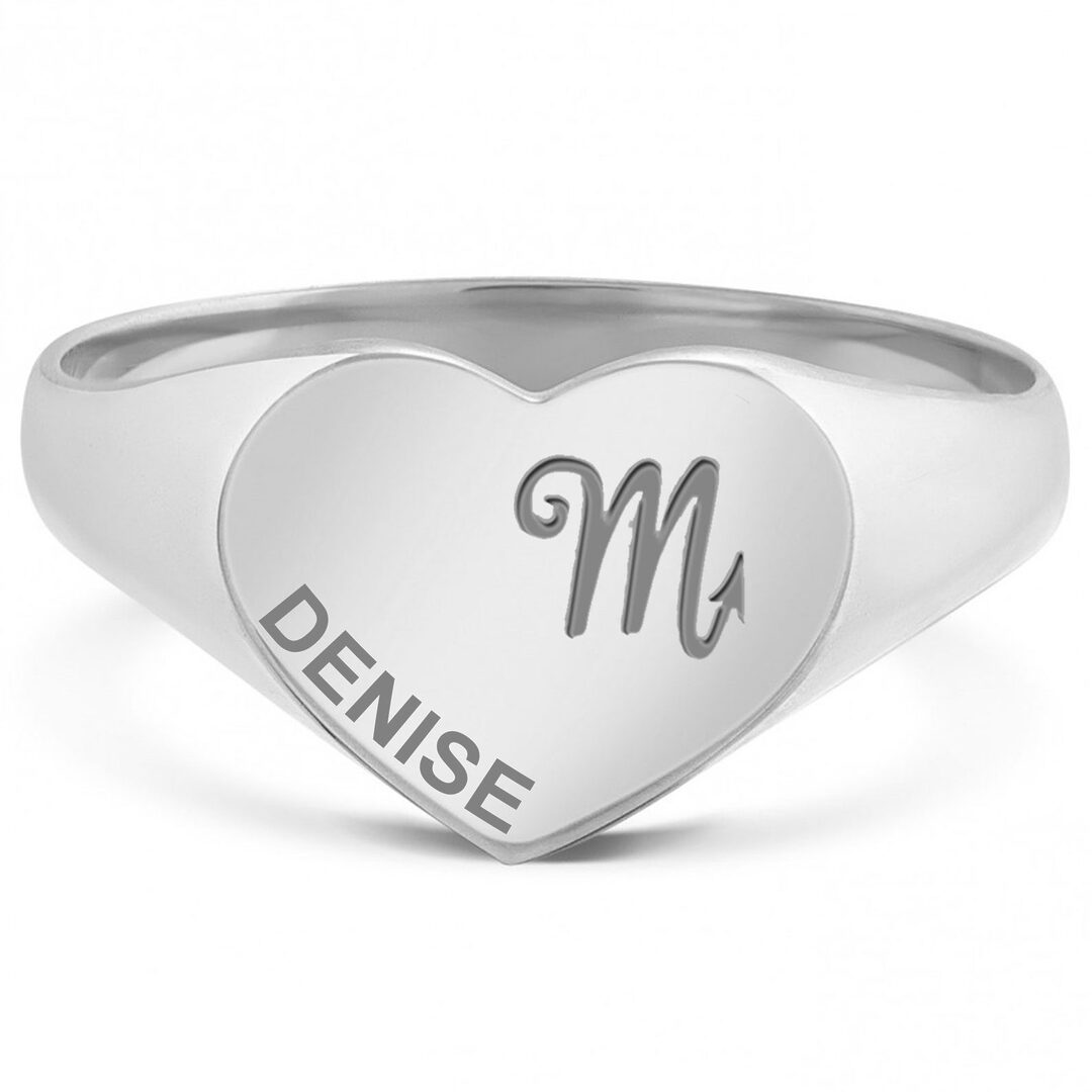Zilveren zegelring hartvorm met horoscoop en gravure – Schorpioen