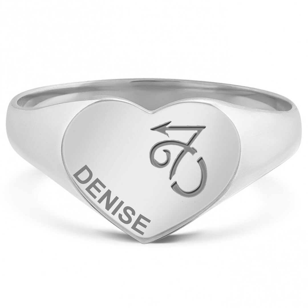 Zilveren zegelring hartvorm met horoscoop en gravure – Steenbok