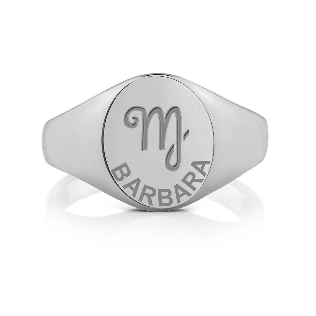 Zilveren zegelring ovaal met horoscoop en gravure – Maagd