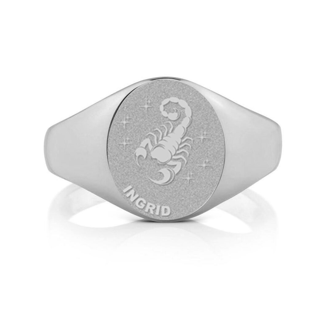 Deze ring is speciaal gemaakt voor iemand met dit sterrenbeeld; iemand die is geboren tussen 23 oktober en 21 november. Vooral, omdat er ruimte voor een naam of datum is. De naam of geboortedatum van degene met dit sterrenbeeld natuurlijk! En met ruimte tot 12 tekens, is bijna elke naam mogelijk!