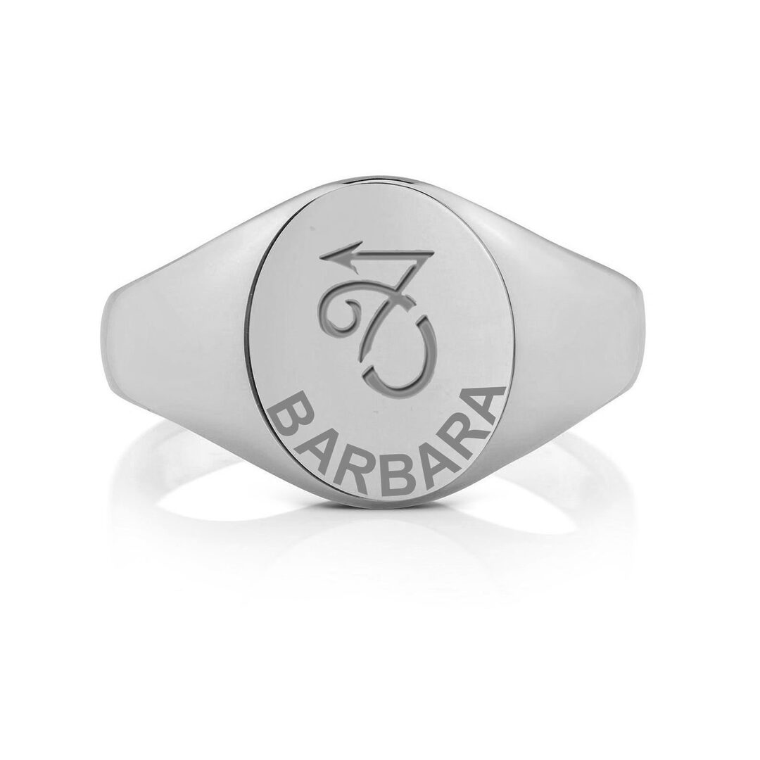 Zilveren zegelring ovaal met horoscoop en gravure – Steenbok