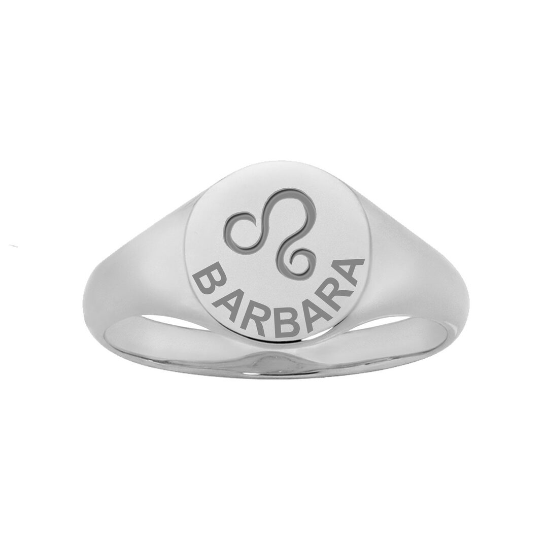 Deze zilveren zegelring met het sterrenbeeld-symbool Leeuw is een echte eye-catcher en perfect geschikt voor een hij of zij die Leeuw is. De zegelring is gemaakt van 925 Sterling zilver en kan gepersonaliseerd worden met een naam.