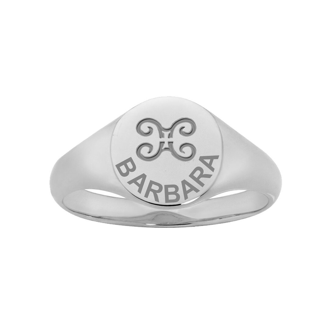 Zilveren zegelring rond met horoscoop en gravure – Tweeling