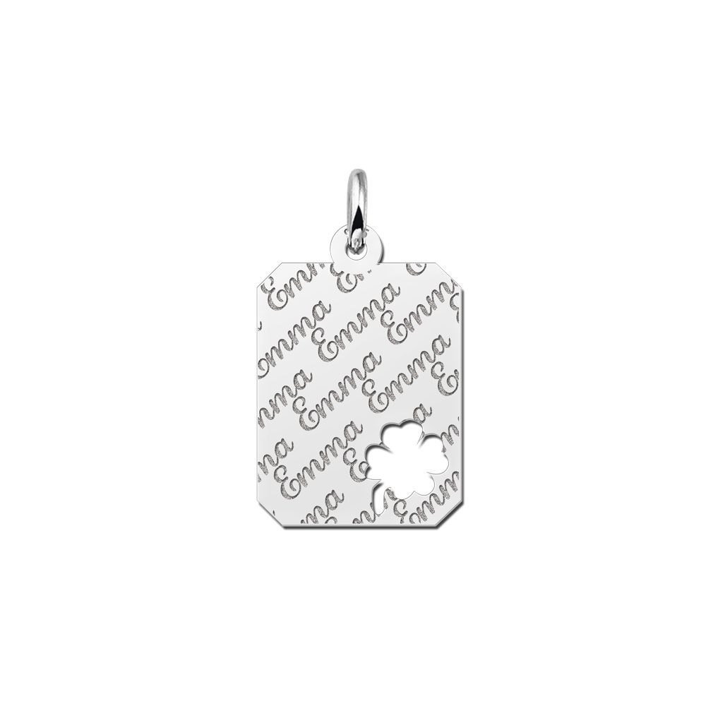 Het zilveren graveerplaatje 8-kant is ca. 14 x 18 mm groot, met een kalvertje vier en wordt voorzien van de naam naar keuze. De naam wordt herhaaldelijk in sierlijke letters gegraveerd. Dit geeft een moderne twist aan de graveerplaat. Vergeet niet een bijpassende ketting mee te bestellen. Snelle en gratis levering!
